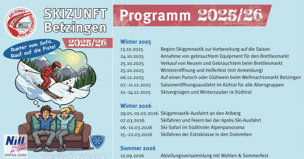 Ihr Herz schlägt für Skispaß, Genuss und Tradition? Schließen Sie sich der Skizunft Betzingen (www.skizunft-betzingen.de) an und erleben Sie unvergessliche Momente in den schönsten Skigebieten. (FB)